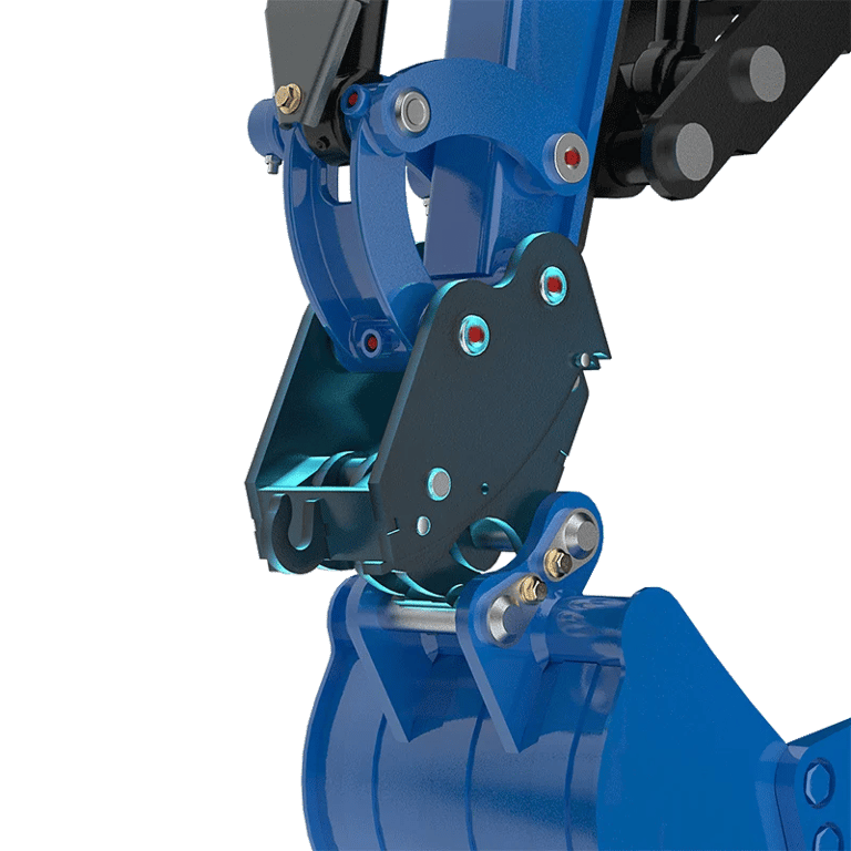 Equipada com um engate rápido mecânico, que permite trocar acessórios de forma rápida e sem recurso a ferramentas. Compatível com baldes, martelos hidráulicos e outros implementos, o seu corpo metálico robusto, articulações de precisão e pinos reforçados (com parafusos prateados visíveis e juntas vermelhas) garantem um desempenho fiável e resistente ao desgaste. O suporte compacto em formato “U” e a placa de ligação preta e reforçada asseguram um encaixe firme e uma inspeção fácil, reduzindo tempos de paragem e aumentando a eficiência em trabalhos de escavação, demolição e serviços utilitários.