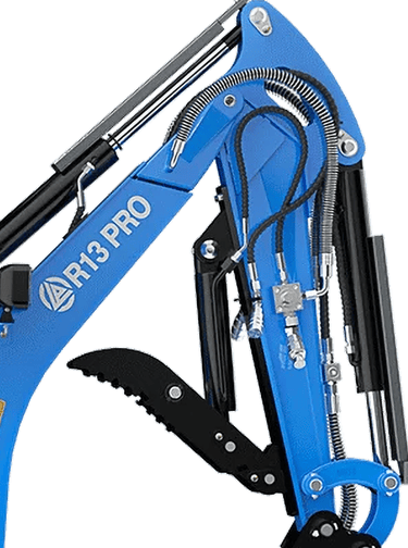 A mini-escavadora R13 PRO combina dimensões compactas com a mesma potência da R15, tornando-se especialmente adequada para trabalhos em espaços reduzidos onde a manobrabilidade é decisiva. O sistema hidráulico eficiente e as capacidades operacionais equilibradas garantem resposta rápida e precisa em escavação, carga e movimentos de precisão. O design fiável e duradouro, aliado a uma operação confortável, manutenção simples e especificações em conformidade com os padrões internacionais, fazem da R13 PRO uma solução robusta e profissional para quem privilegia potência em formato compacto.
